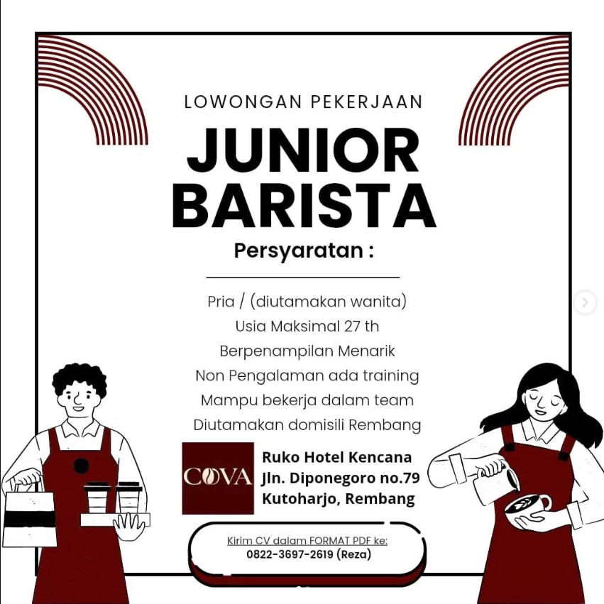 Lowongan Kerja Junior Barista COVA Cafe Rembang: Non Pengalaman Bisa Melamar