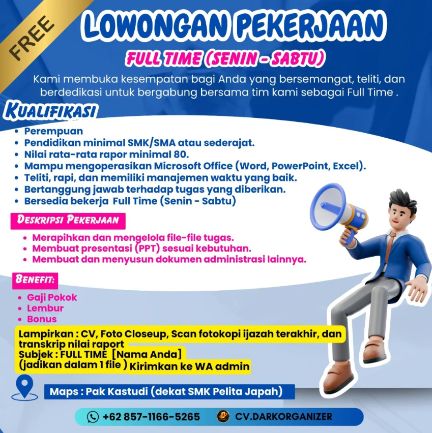 Lowongan Kerja Admin CV Dark Organizer Japah Blora: Syarat Nilai Rapor 80
